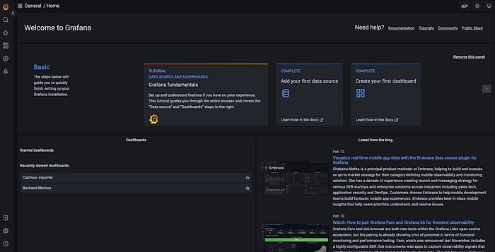 3- Open Grafana in a browser by visiting http://localhost:3000