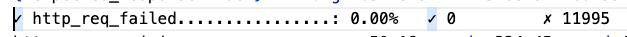 As can be seen in the results, the last line indicates that some of the defined thresholds (with SLOs) have failed. The p95 latency is 28.4s, which is well above the 200ms marked as objective. However, the error rate of 0.27% has remained below the 1% set as objective.